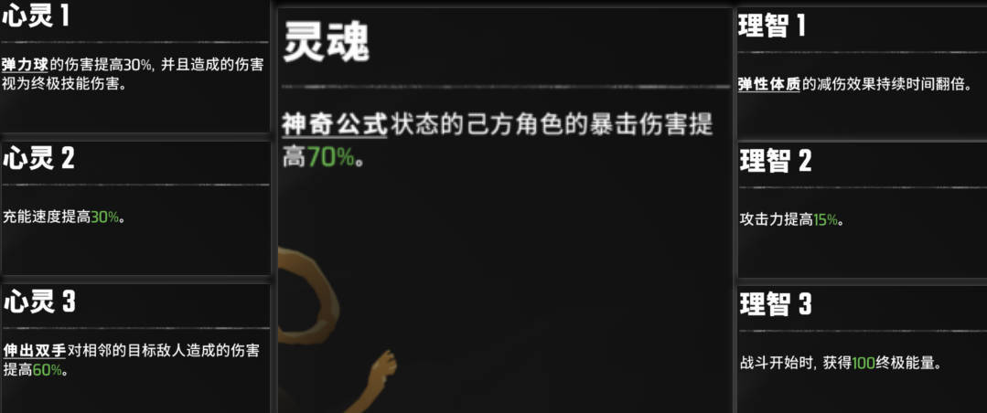 一命首先推荐【心灵1】战技提升成核心,吃到终极技能伤害的加成,这样使终极技能与【弹力球】有联动。