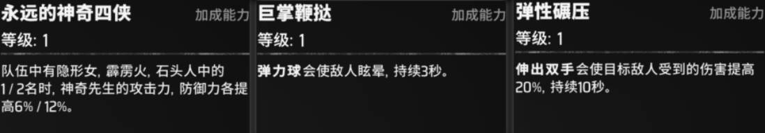 21级解锁神奇四侠特有天赋【永远的神奇四侠】队伍里有神奇四侠中的1/2名时,神奇先生会根据四侠数量提升攻击力、防御力6%/12%。