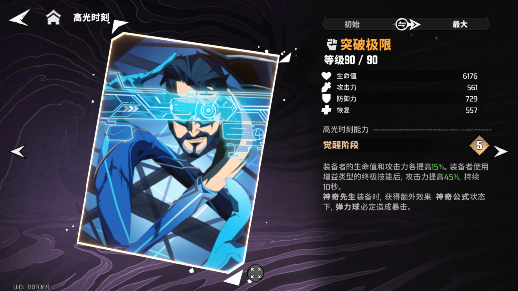 这也是之前攻略所说,神奇先生看重灵魂,如果你是零氪党或者手气很黑,那么这个英雄我是不推荐去抽,太吃了,至少5命才可以玩,拿到先手的一百点终极能量打剩下三百的循环。
