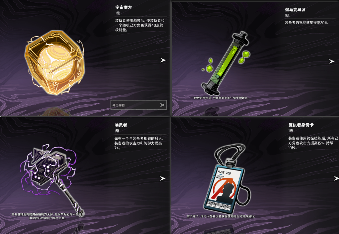 没有【宇宙魔方】的玩家可考虑【复仇者身份卡】&【瓦基里臂甲】这些能够使用终极技得到收益的神器。