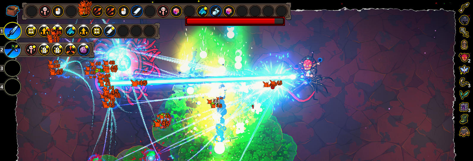 陨石的魔杖见到三色权杖一定要拿,三色权杖带来的debuff加上分裂陨石的大范围伤害效果非常好!