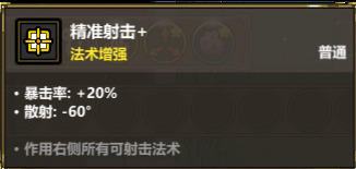精准射击不仅可以提升暴击率,还可以帮助我们修正散射角度,要知道不少好的法杖动辄散射角度100+,精准射击就帮助我们完美完成了这个问题!