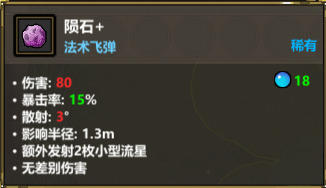 陨石,陨石的伤害非常高,因为第一根魔杖即便暴击也未必能够清场,而陨石的作用就是辅助第一根法杖做清场的效果!但是因为陨石其实非常的耗蓝,所以我们需要加一个节能模式!