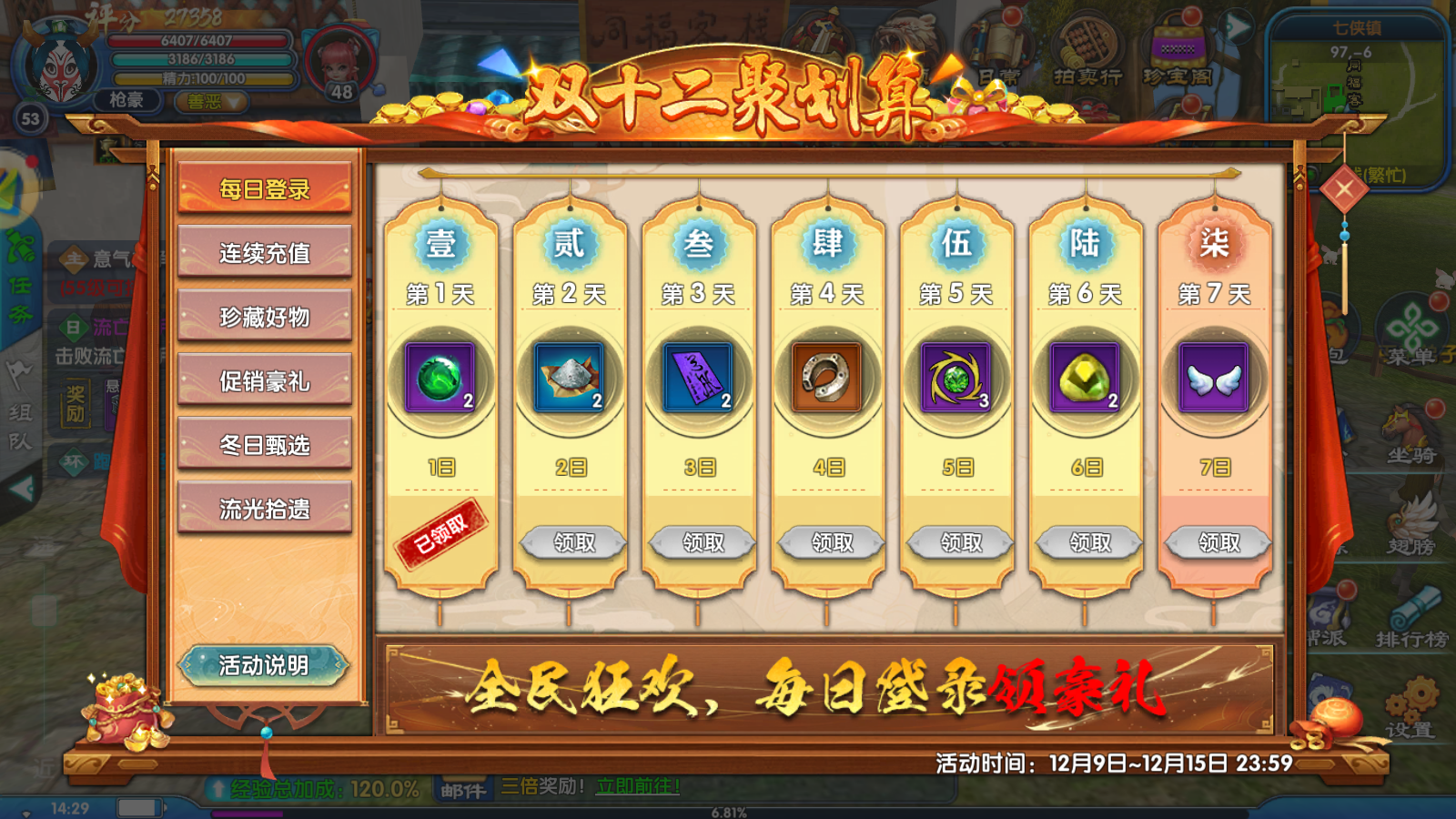 三、总结:江湖有乐趣,福利不缺席《武林外传十年之约》既有职业养成、特色玩法、社交互动等丰富核心内容,满足不同玩家的体验需求;双十二活动更堪称 “囤货黄金期”,做日常攒小金币、抽祈愿拿大奖,轻松补齐养成短板。