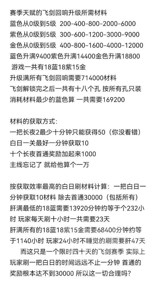 以赛季核心系统“飞剑”升级为例,玩家计算需连续42天、每天24小时不间断刷本才能毕业,而赛季总时长仅40天。高难副本“深渊”更被曝出怪物自带85%减伤,关键增伤Buff仅能通过商城付费抽取(优化后改为副本低概率掉落),最终演变为“逼肝+拼脸”的双重折磨。