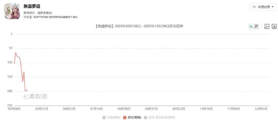 国服不足两月即跌出畅销榜前200名,台服更在两周内销声匿迹于榜单。
