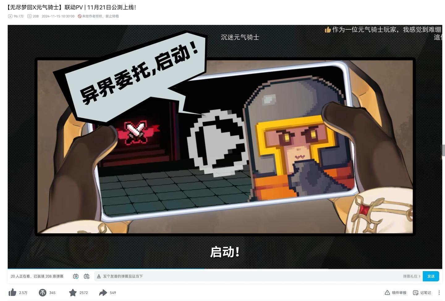 其噱头包括,邀请《原神》作曲家陈致逸定制配乐,联动《元气骑士》推出免费角色“元气之梦亚伦”,宣发资源达千万级别。