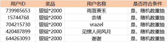 锦儿在核对完初次中奖玩家留言内容后,按照活动规则,发现所抽取的少侠留言内容均不符合活动要求。按照规则,锦儿重新进行随机抽取(抽取对象为符合活动要求的玩家,采用随机数生成的方式抽取楼数。使用网站公示:随机数生成器)!