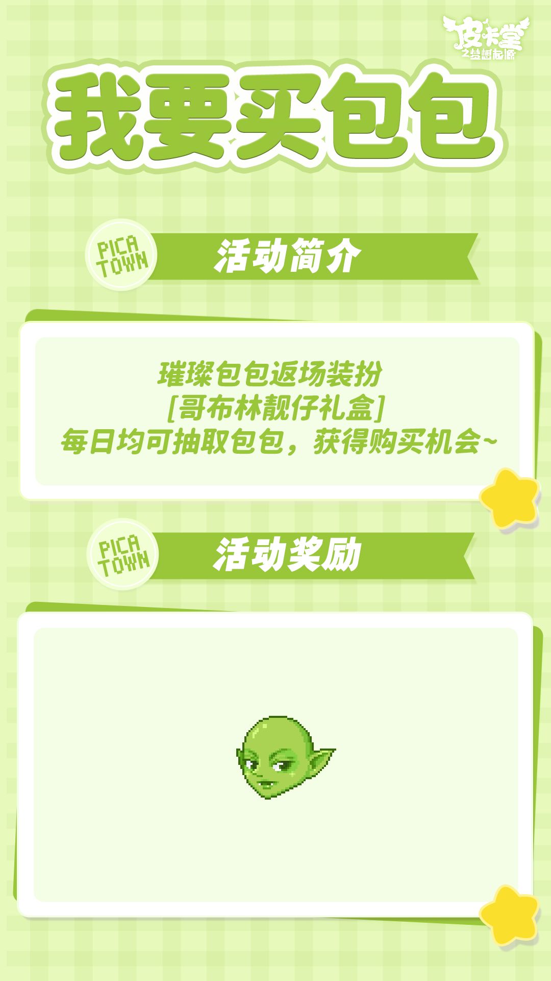 -【我要买包包】璀璨包包返场装扮[哥布林靓仔礼盒]!每日均可抽取包包,获得购买机会~