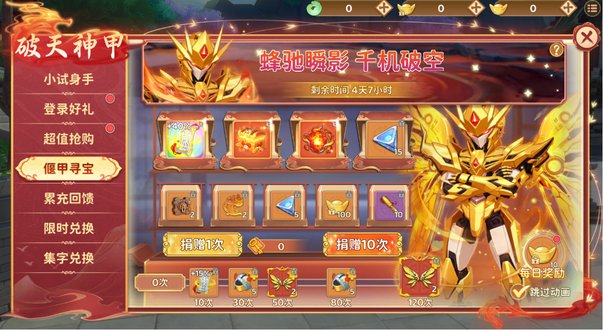 集活动道具,捐赠达指定次数即可随心领取破天神翼碎片,开启你的幻灵进化之旅!