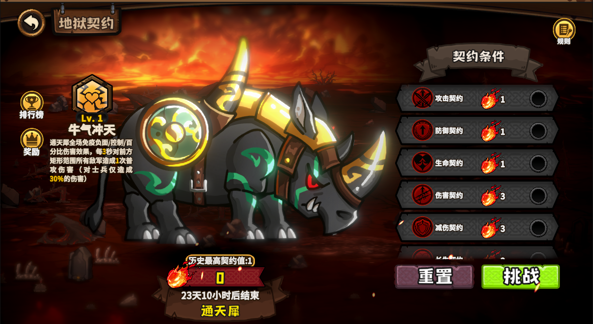 ●领主可根据自身实力选择契约条件,不同契约将会带来不同的契约值。