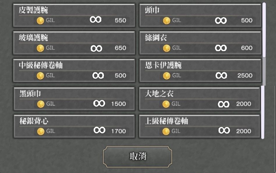 2)黑法袍:大地之衣+恩卡伊护腕+4500GIL(两个都在莫古商店购买)