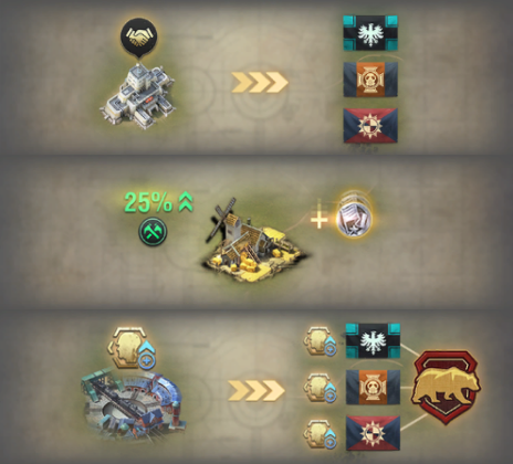军团内所有成员都将获得各个战略要地的首占奖励及增益效果。
