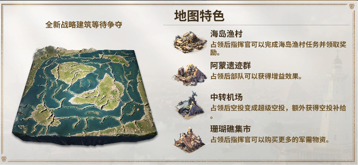 3.提高海岛渔村的声望,将会提高本联盟/军团在对应渔村范围内地图建筑的火力和耐久。