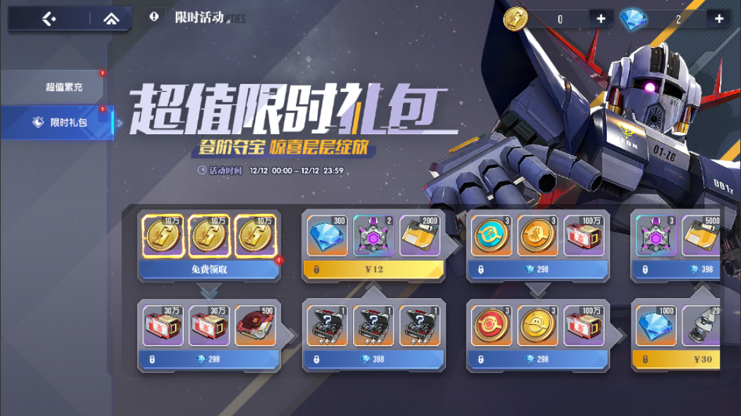 12月12日当天【超值限时礼包】活动将开启,欢迎指挥官前往选购