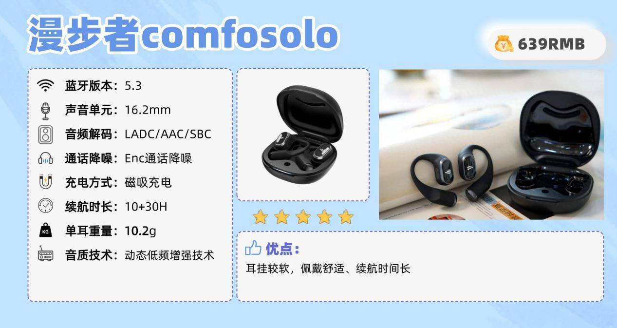 音质方面,Comfo Solo搭载动态低频增强技术,配合创新空气声腔架构,不仅拥有更宽广的频响范围,还具备强劲磁驱力,让声音细节清晰可辨,呈现纯正HI-FI级听音体验。该耳机已通过HI-Res小金标认证,音质参数较普通耳机提升约3倍,特别适合追求高品质音效的用户群体。