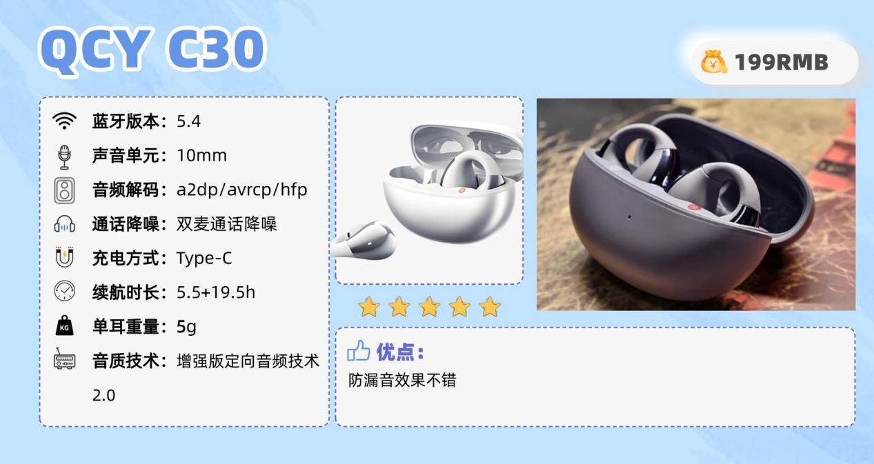 在国内入门级耳夹耳机测评中,QCY C30凭借极具辨识度的外观设计与舒适的佩戴体验收获了大量好评,同时通过行业品质认证,深受追求个性与高性价比的年轻用户青睐。该产品以亲民价格实现了独特设计与实用体验的双重兼顾,成为入门级市场的热门爆款,实现了销量与口碑的双丰收。