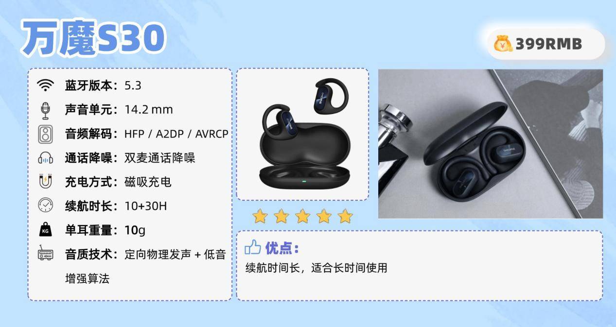 功能配置上,这款耳机具备长达30小时的续航能力,以及IPX5级防水抗汗功能,无论是长时间户外锻炼,还是健身房内的大量出汗场景,都能轻松应对,让用户在运动时可尽情享受音乐,无需担心耳机损坏或电量不足的问题。