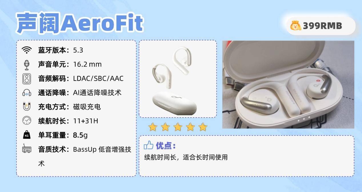 佩戴设计上,声阔Aero Fit将佩戴稳固性作为核心竞争力,采用分体式耳挂构造,可依据不同耳型与个人使用习惯灵活适配。单耳仅重8.5g,柔性耳挂能自然贴合耳廓线条,适配范围广泛不挑耳型;与皮肤接触的部位采用亲肤TPU材质,摩擦系数低,长时间佩戴也不会产生明显压迫感或闷热感。