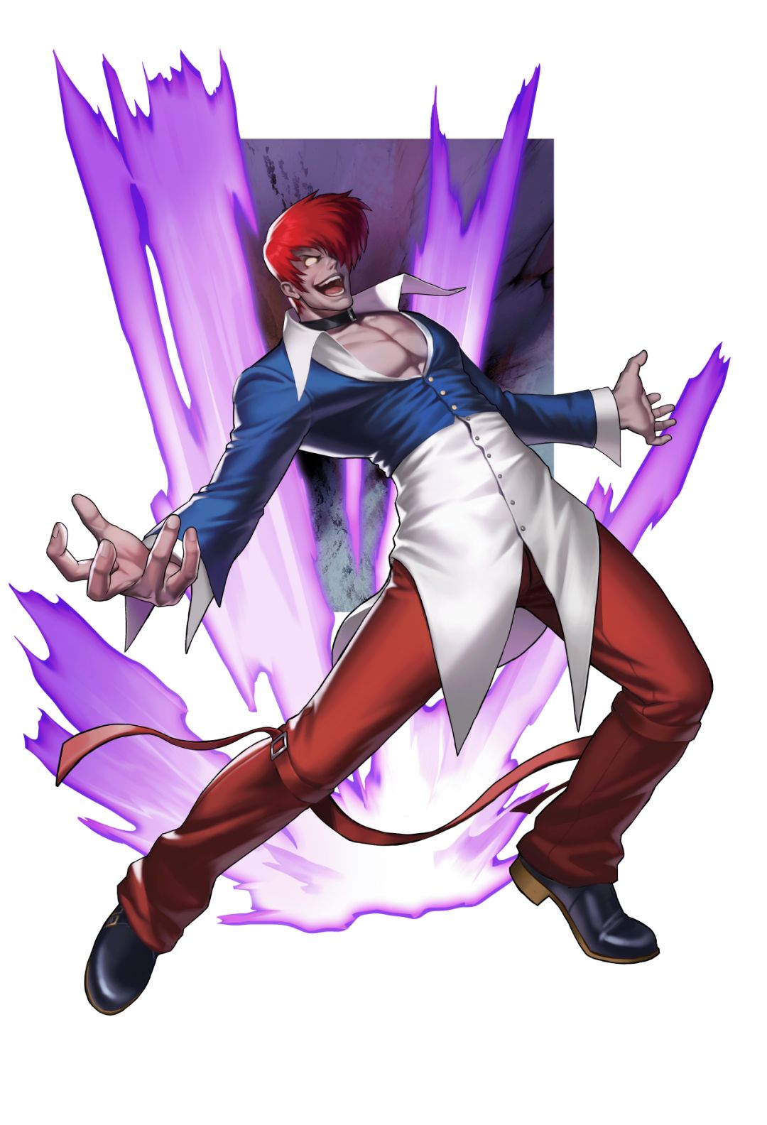 暴走八神庵的本质,是八神家族与大蛇交易导致血脉诅咒的 “狂焰容器”。与常态下克制本能的 “孤傲姿态” 不同,他对苍炎之力的掌控更带着一种 “失控式的宣泄”。这种对力量的极致释放,让他的战斗风格充满毁灭的美感。暴走前身着标志性的黑色皮夹克,眼神里满是桀骜不驯的冷冽。可一旦血脉中的疯狂觉醒,紫黑色的苍炎便会顺着他的周身暴涨,铁链在狂气中肆意挥舞,原本冷冽的眼神会被赤红的狂怒取代,拳脚之间皆是苍炎灼烧的毁灭之力,仿佛从孤傲格斗家瞬间切换成毁灭一切的狂鬼。