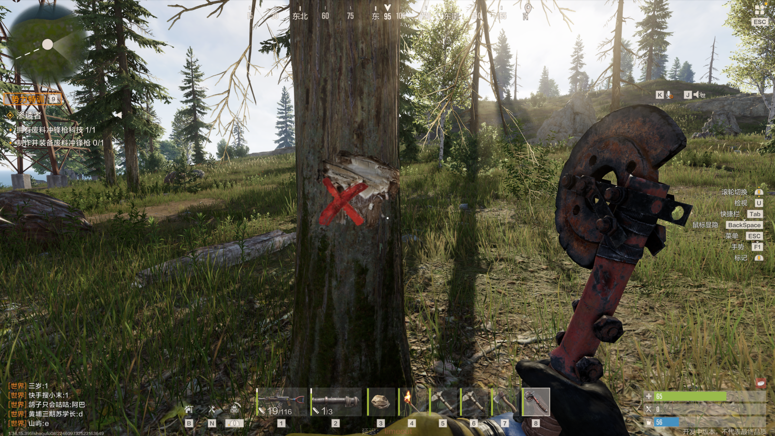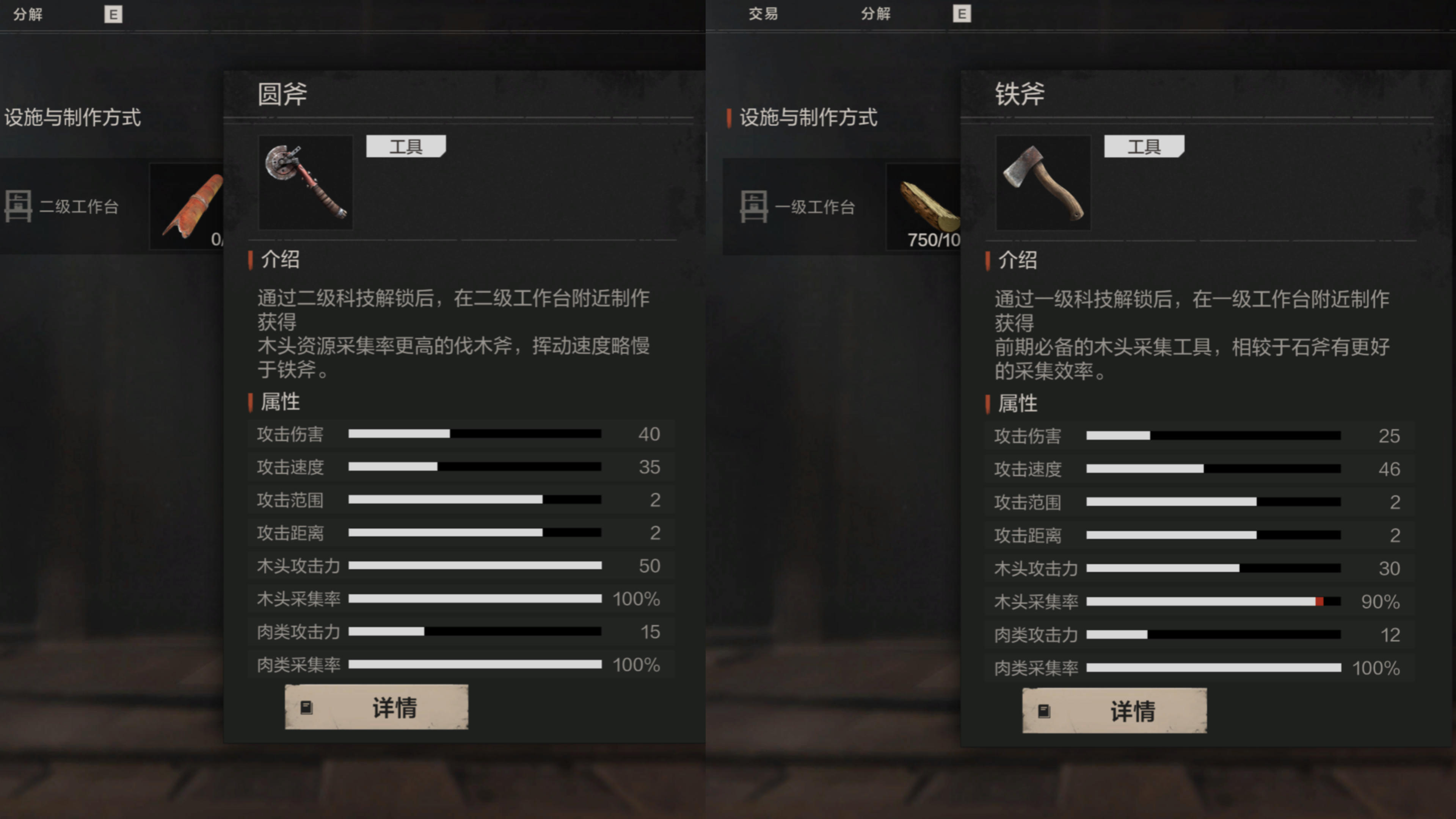 中期:升级为铁斧/圆斧(通过物资箱和蓝图制作获取,且圆斧>铁斧),当然,废料锤也可以。木材获取效率更上一层楼!
