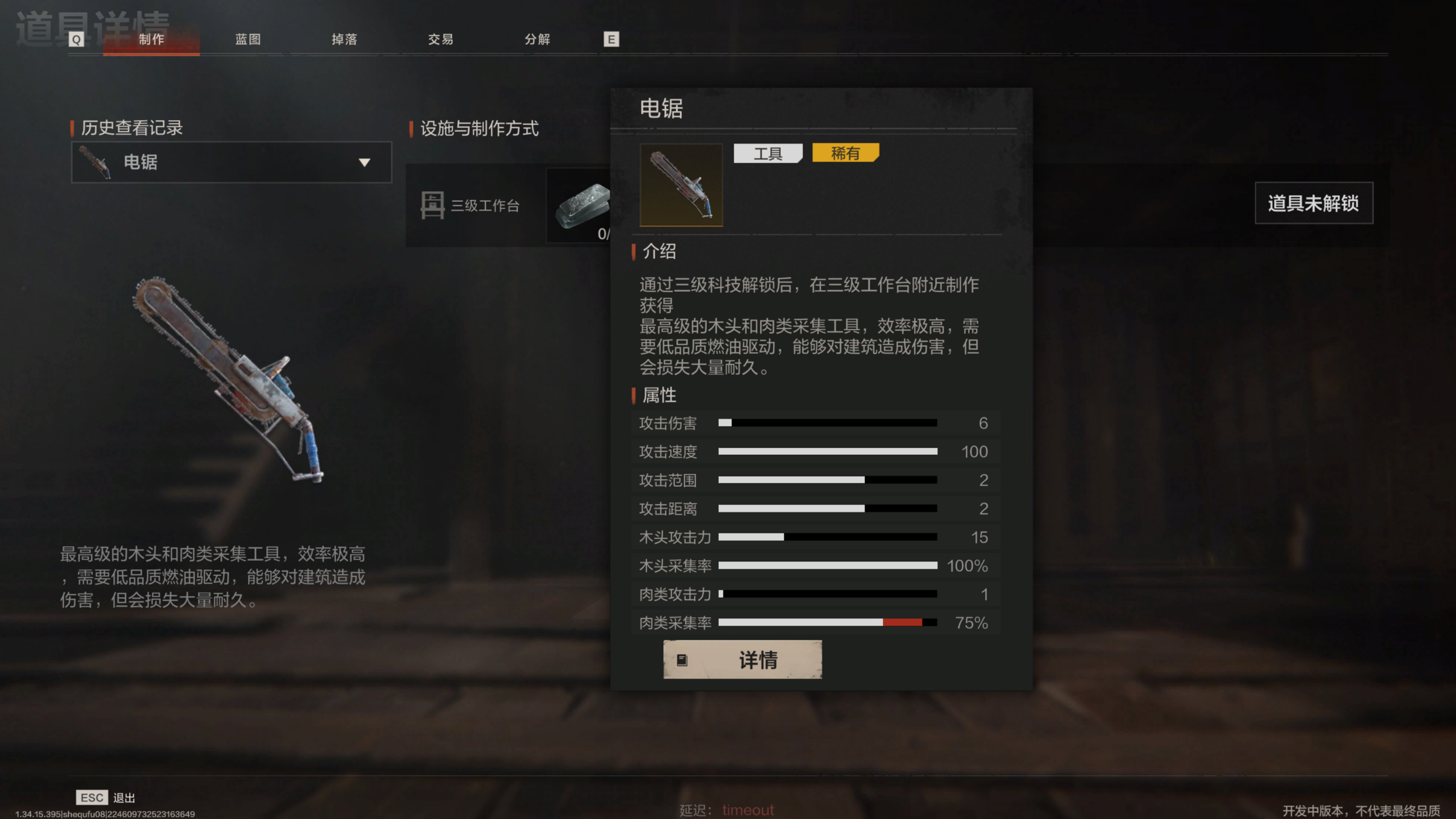 后期:使用电锯(通过物资箱和蓝图制作获取)实现最高效采集!
