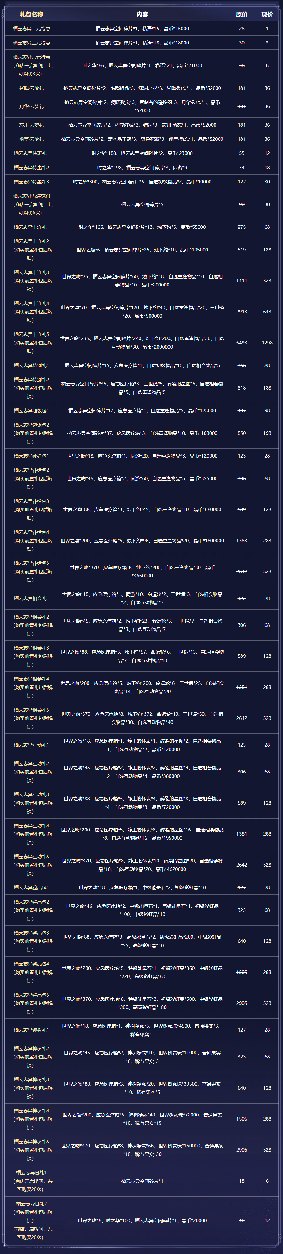 *无特殊标注,则在商店开启期间共限兑1次。