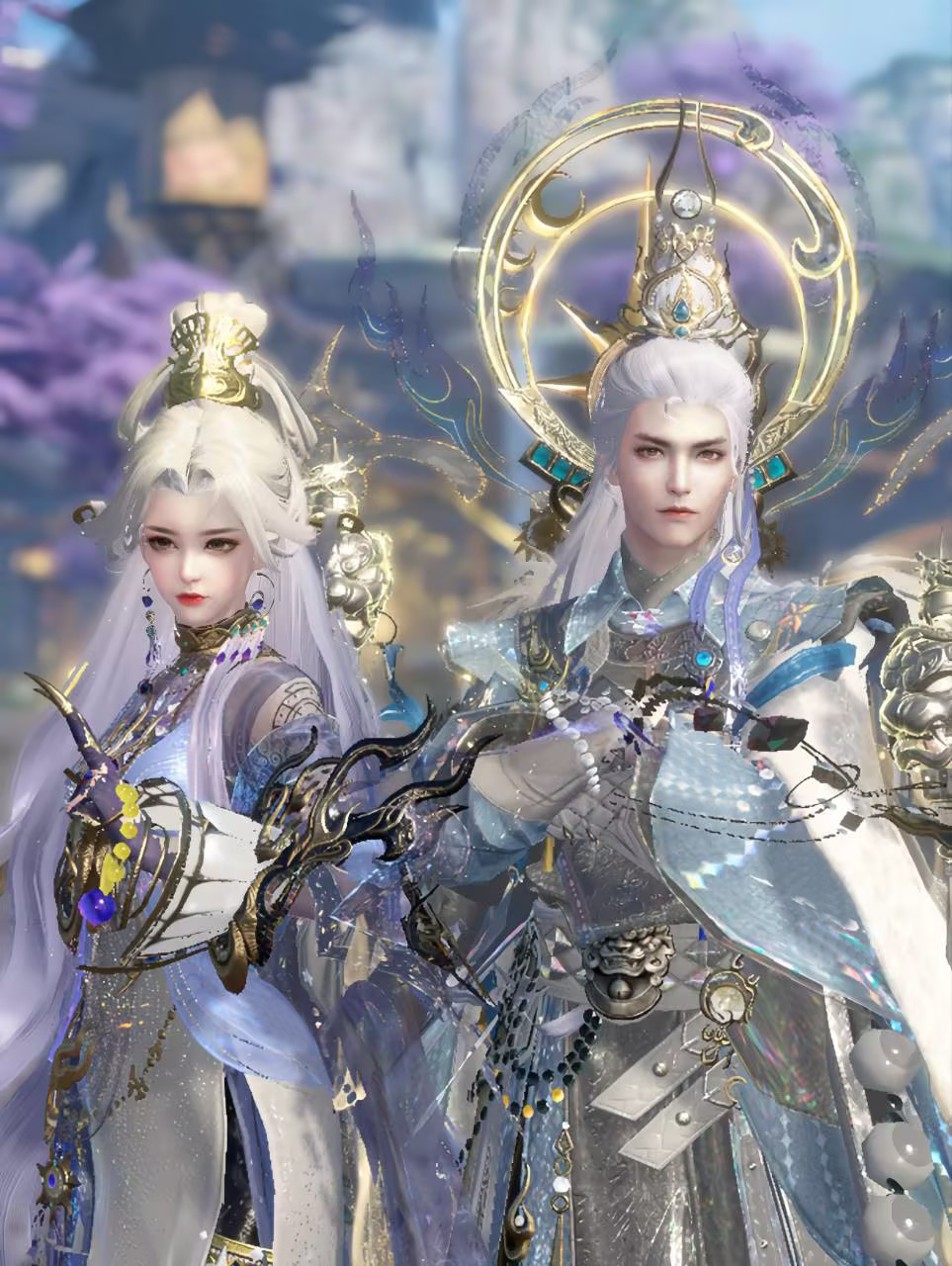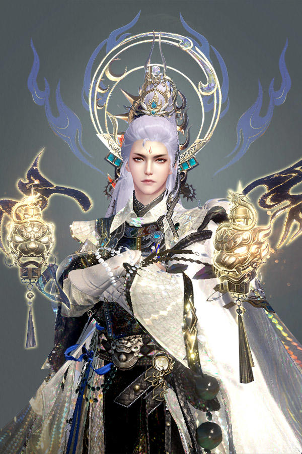 少年体型则更具为飘逸,犹如清冷贵气的年轻神邸,少年纤细的身躯将黑白金的华丽材质衬得更轻盈,既有少年的清俊青涩,又以华丽精致的头冠撑起了 “神祇” 的庄严气场;