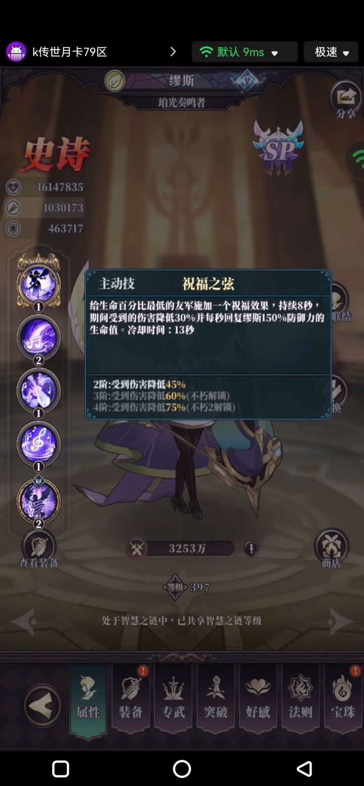 3. 主动技:净化之音:既能驱散所有敌人的增益效果,又能清除己方所有减益效果,同时为己方全体提升20% - 80%伤害加成,持续5秒,是扭转战局的关键技能。
