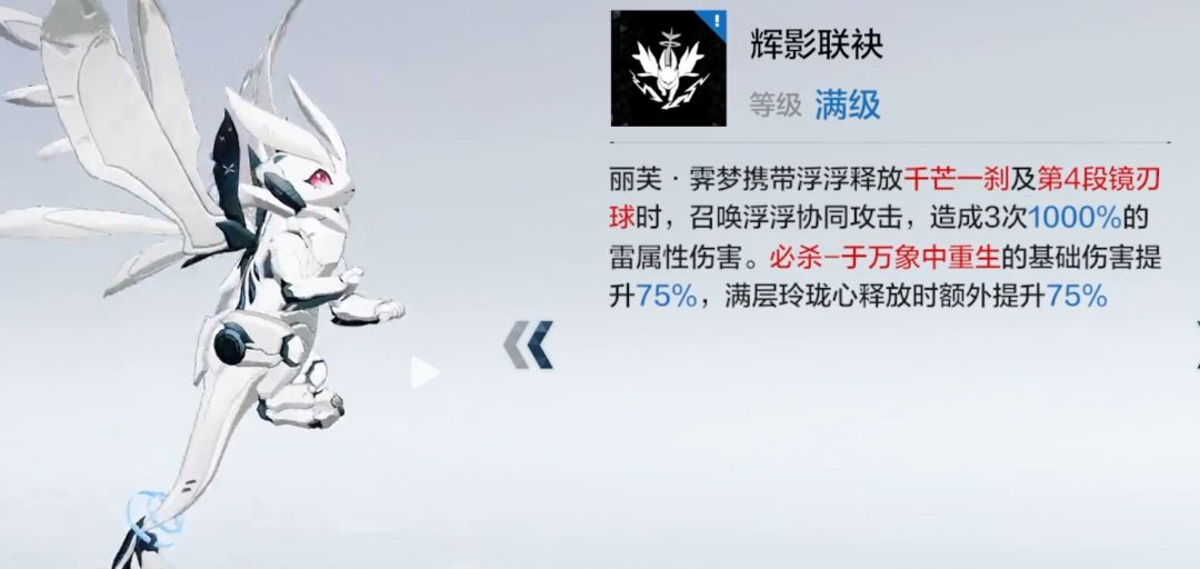 玲珑心:消耗白球(4 个获 6 层)+ 长按普攻(满流影值获 6 层)增伤 buff(上限 12 层),每层提升 7.5% 二段大伤害,满层额外 + 10%(总计 100% 增幅)