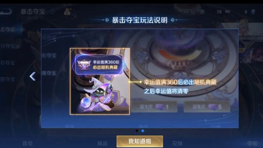 最争议的是新出的“暴击夺宝”——抽一次最多加10点幸运值,理论上两百块可能出典藏?但实测大概率是欧皇专属,而且保底给随机皮肤这点太坑,非酋慎入。比起赌暴击,我更宁愿攒荣耀积分抽水晶,至少能选自己想要的~