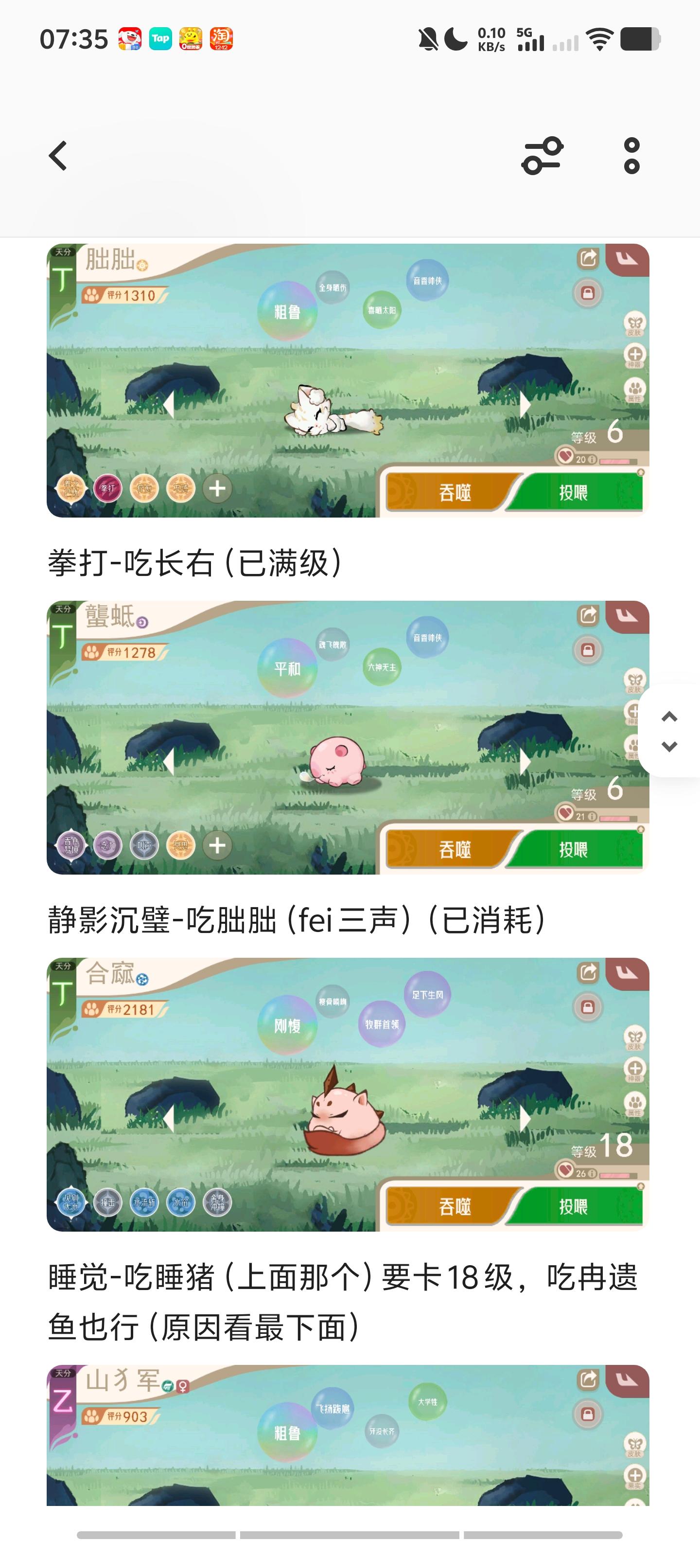 内测的吞噬技巧毫无变化,只有升级所需宠物数量增加了,所以这边直接把群攻略搬运过来。先看文字攻略,截图都是案例。本篇也去掉了挖洞大塞,公测不知道改成什么样