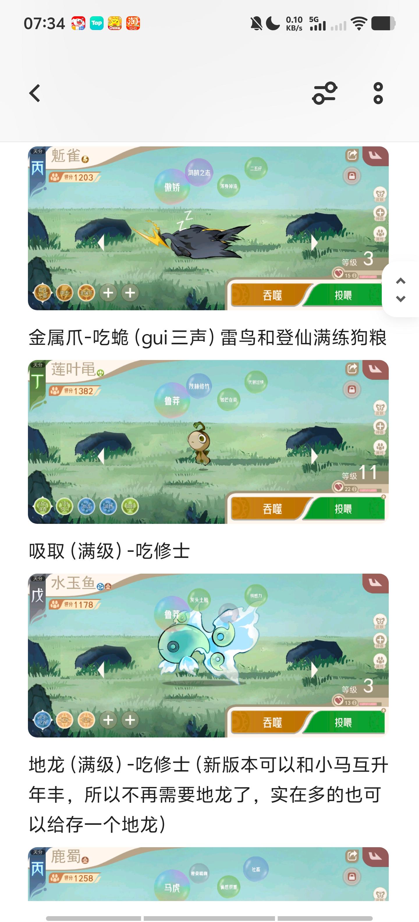 ⑤稀有精灵往往有自己专属的技能,这个时候直接吃自己本体非常亏(代价高,不一定升级到专属技能)所以我们选择把其他技能全部升满,再吃本体,达到百分百利用。例如雨狮把其他技能升满,最后吃自己升乌云密布,当然雨狮刷词条的时候可能剩下一大堆,拿本体吃电击蓄电什么的也无妨,但是其他能用窃鸟,鲤鱼升的级千万不要吝啬(有极品词条再这么干,不然很亏)