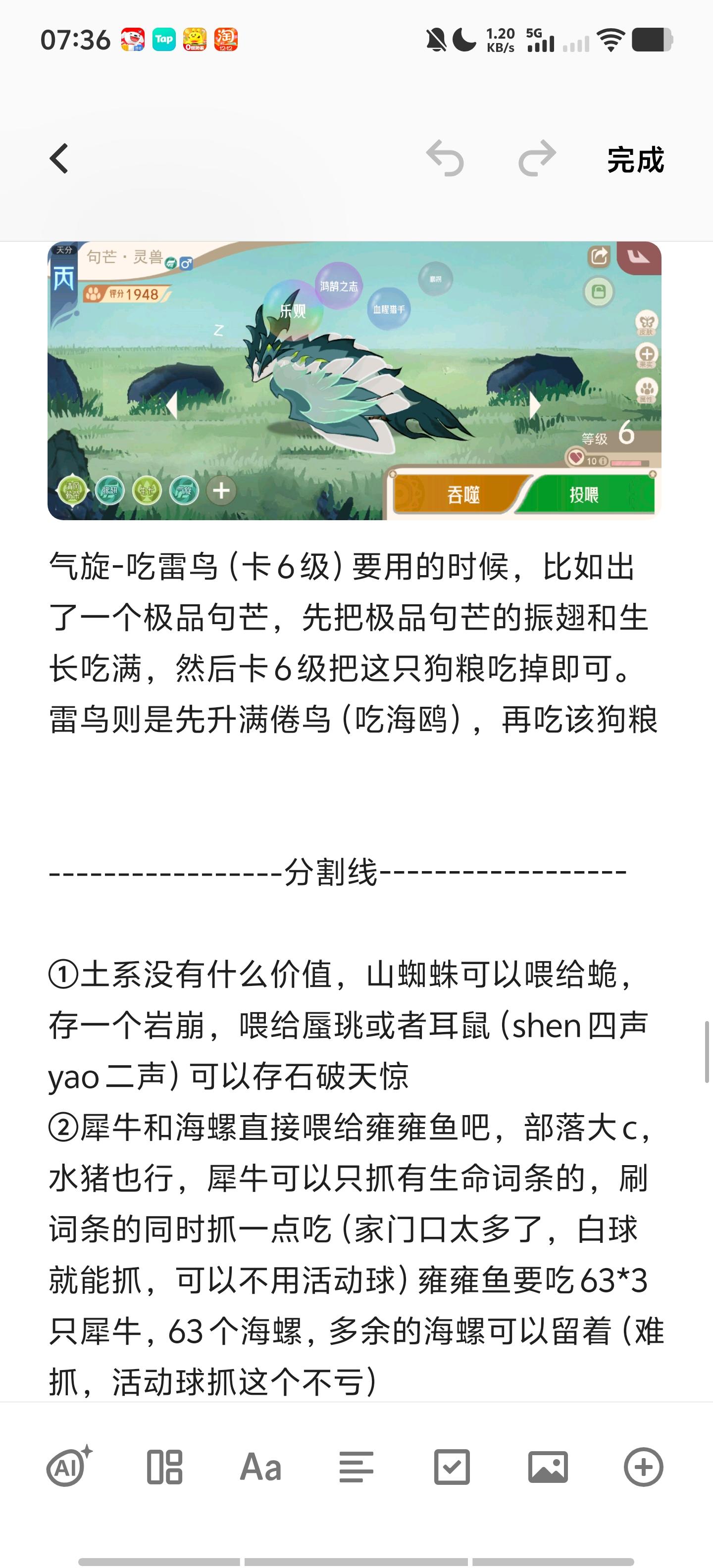如果想升级气旋,就要吃雷鸟,但是雷鸟还有可能随机到倦鸟归巢,这个时候只需要把句芒的等级卡到4级,也就是刚刚解锁气旋就行,如果狗粮精灵有多个技能与目标精灵重合,会优先升级已解锁的技能,用这个技巧可以省下来很多宠物(雷鸟不需要升专属技能,所以要单拉气旋,这个时候反向吃一只满级气旋的句芒就行,这个操作能省下来无数只海鸥)