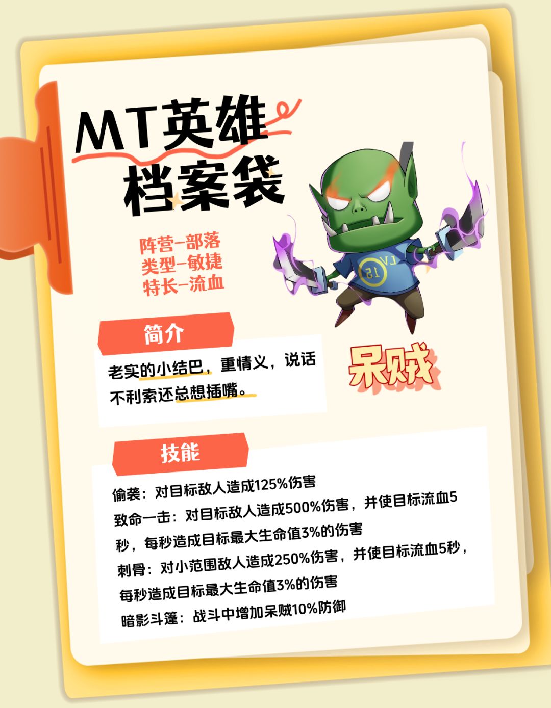 《我叫MT:口袋守卫战》于12月20日正式首发上线啦!预先前瞻英雄属性,助力推图闯关无阻力,更多英雄信息请持续关注官方TapTap社区~