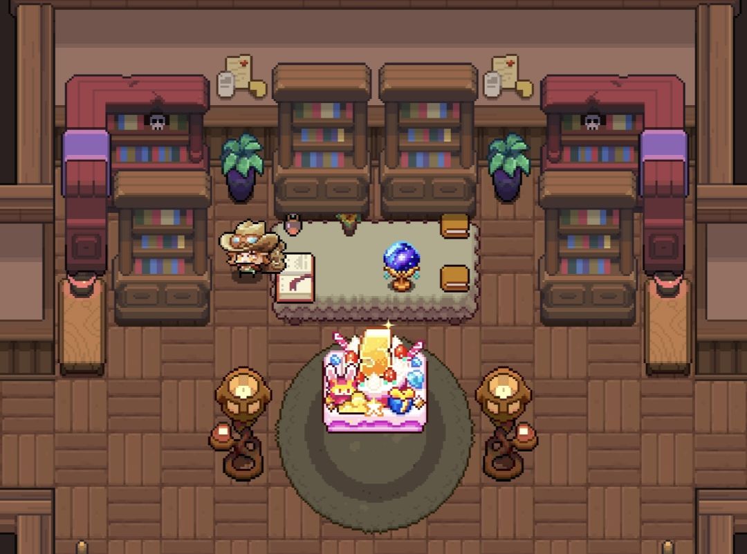 房间里最多的就是书,书架上摆满了从古到今各种书籍,足以见得安对真理的渴求,桌上还有一个水晶球,与这里最格格不入的是一个华丽的蛋糕。
