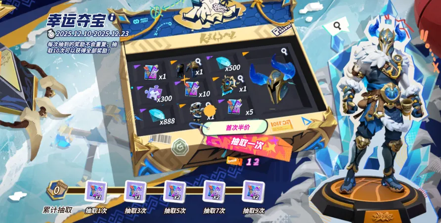 每次抽到的奖励不会重复,抽取满十次就能将奖池中的所有好礼统统拿下。一起穿上新时装,用战吼点燃球场!