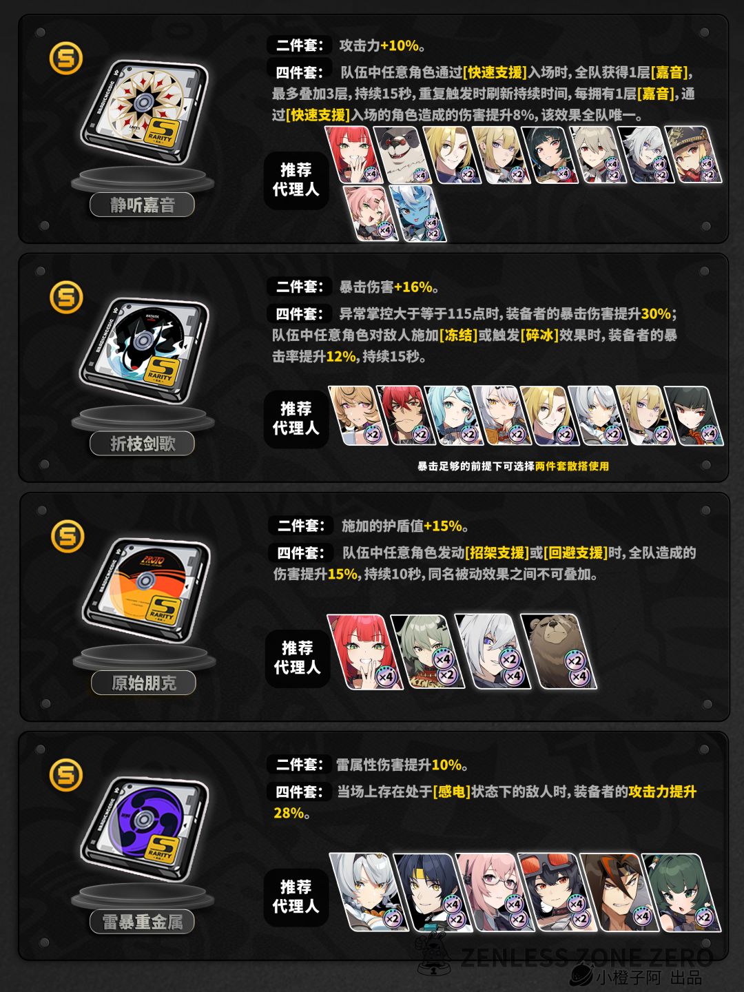 2、有的角色“×2”或者“×4”标识存在多个驱动盘上,小伙伴可根据自身驱动盘情况合理去选择即可,它们互相为平等关系。