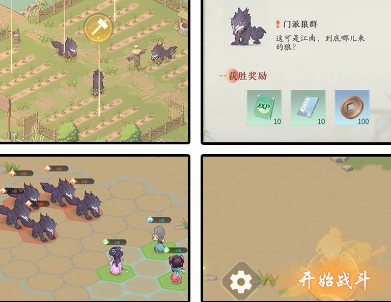 第一步:我们要在门派药园内找到“可攻击”野狼的标志