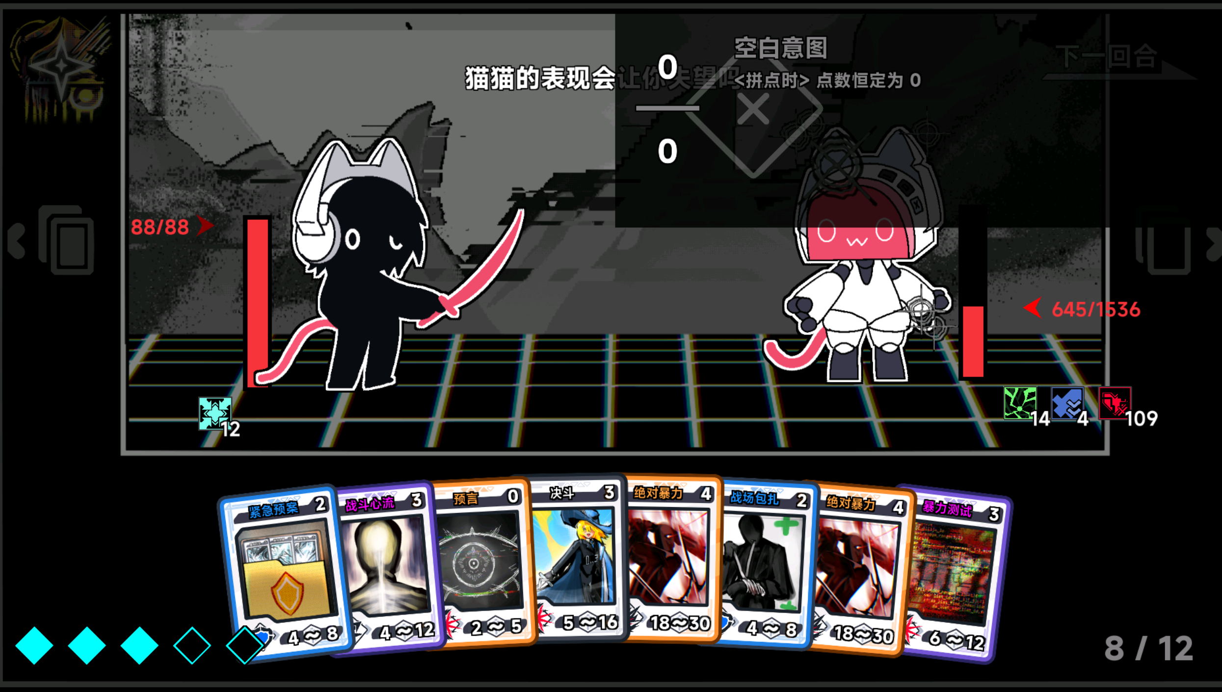 来到第二回合 ,两个未命名变量给你回复费用 ,正常拼点 , 从这回合开始除了未命名变量其余意图随机