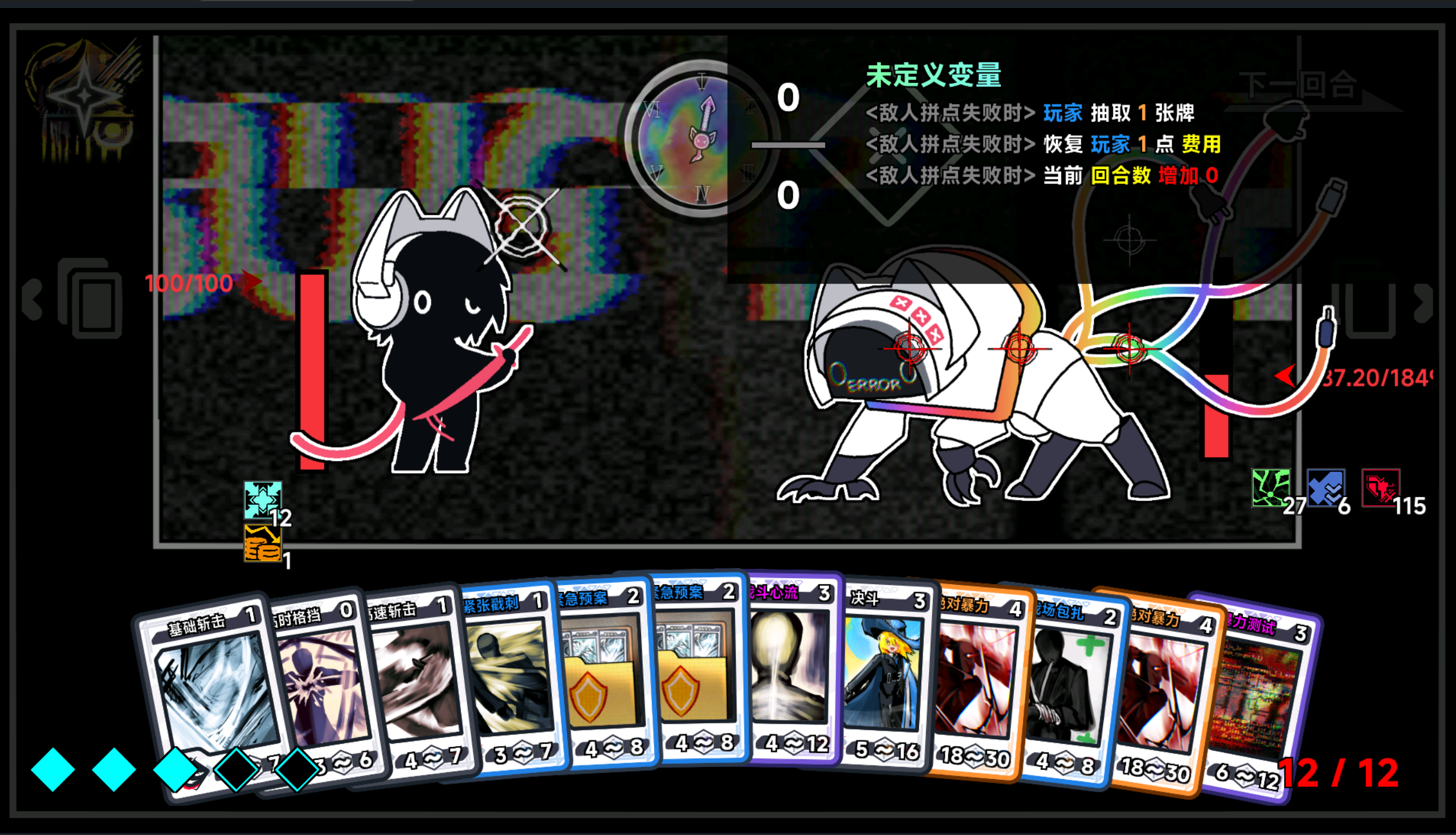 没有费用和抽卡和未定义变量拼点, 数据错误不要忘记拼点, 时间坍缩留在手牌中 ,指针到七或者第八回合,会有超大点数给你逃课, 但是如果你要正常拿悖论逃课打,数据错误可以不拼点 ,没有悖论和叠debuff打务必和数据错误拼点 ,第一回合的意图是固定的 未定义变量 ,三个不同类型的攻击牌, 数据错误
