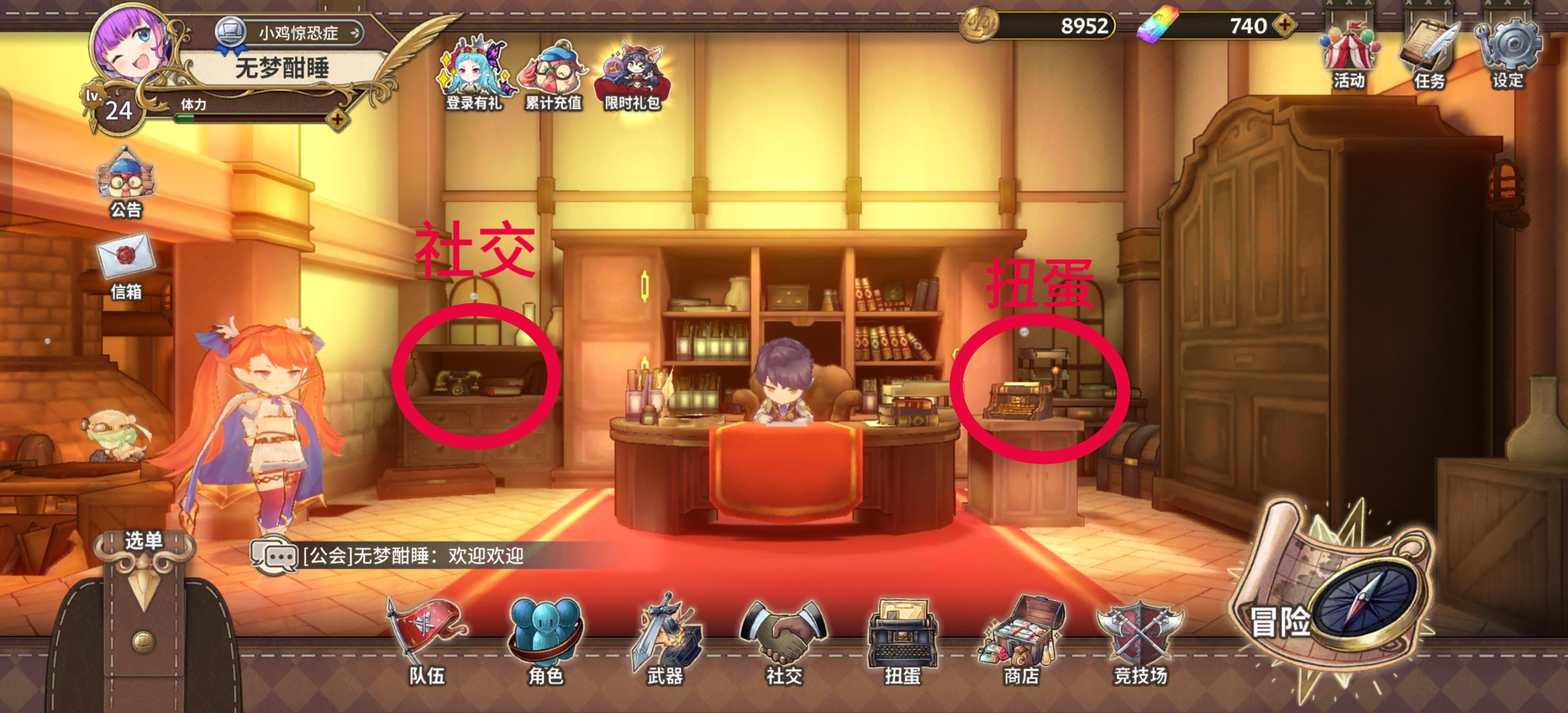在每个区域都有一些可以互动角色或物品,点击会跳转对应界面