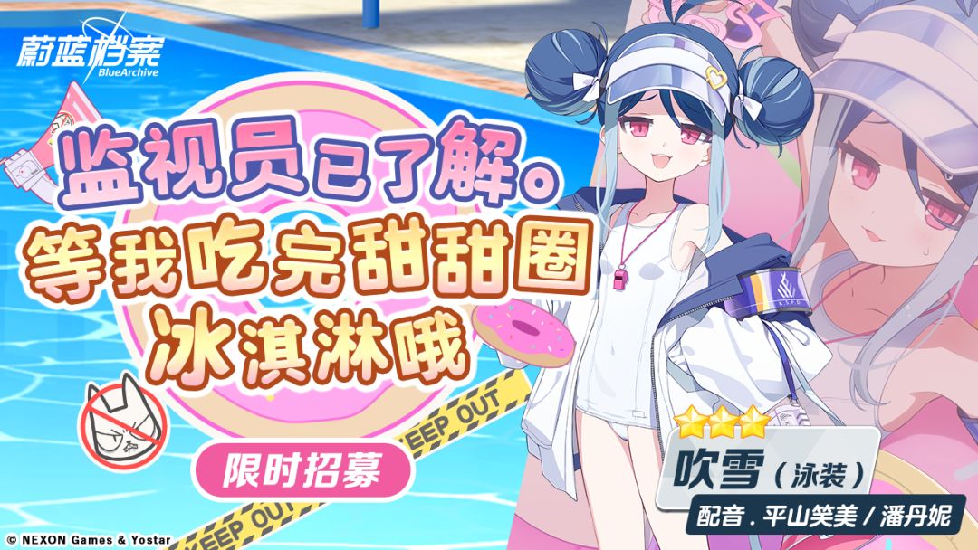 限时招募【监视员已了解。等我吃完甜甜圈冰淇淋哦】即将开启!在本次招募中,全新3★成员“吹雪(泳装)”登场,且招募概率得到提升!