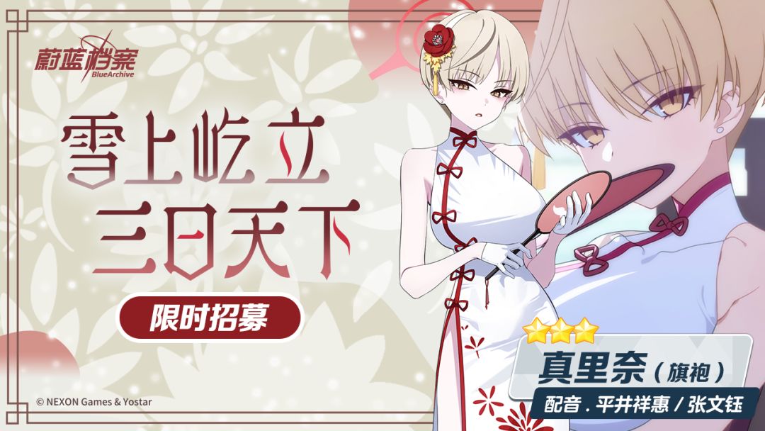限时招募【雪上屹立 三日天下】即将开启!在本次招募中,全新3★成员“真里奈(旗袍)”登场,且招募概率得到提升!