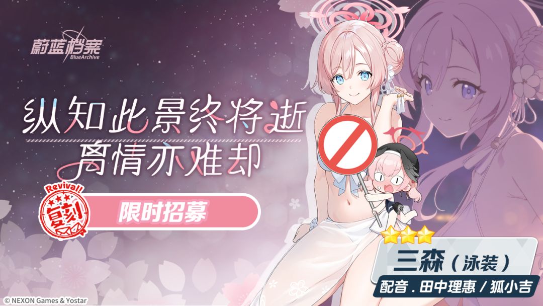 限时复刻招募【纵知此景终将逝 离情亦难却】即将开启!在本次招募中,3★成员“三森(泳装)”招募概率得到提升!