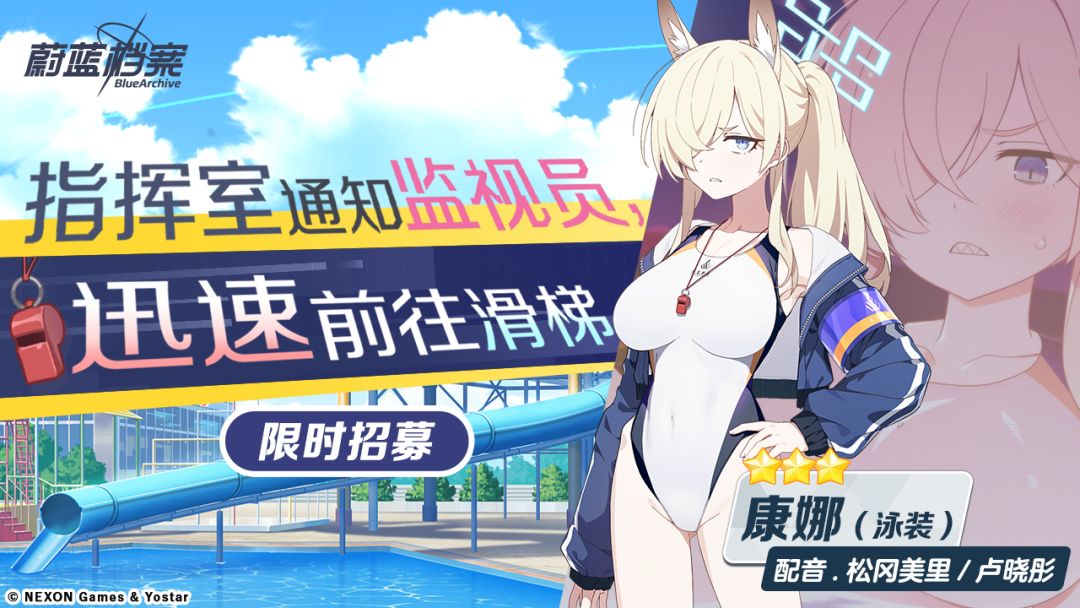 限时招募【指挥室通知监视员,迅速前往滑梯】即将开启!在本次招募中,全新3★成员“康娜(泳装)”登场,且招募概率得到提升!