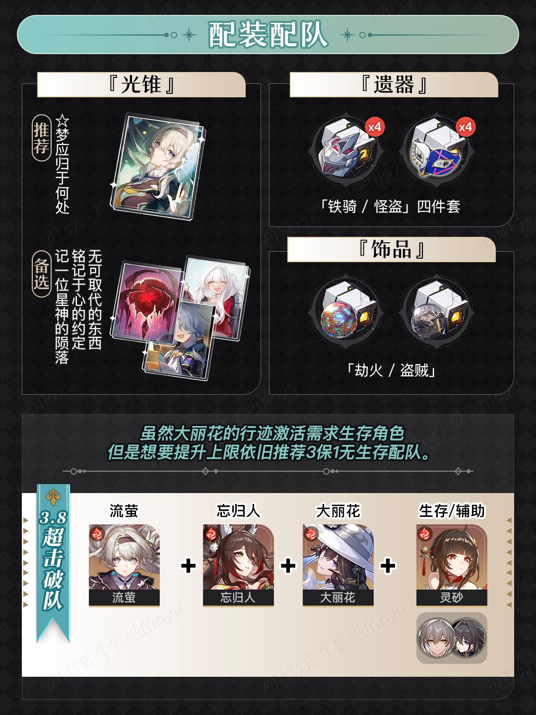 文中包含了「配队配装/角色光锥」等关键信息