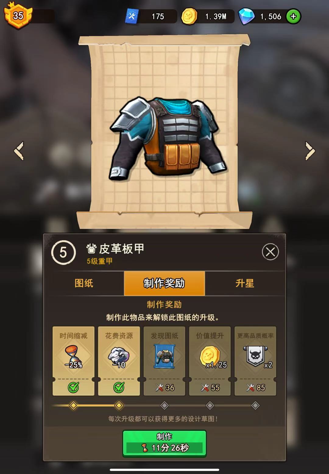 每个路线下有若干小分支。点图纸左下角的感叹号可以看到改图纸的详细信息,和该分支的后续制造路线。如下图,该装备制造36次可以解锁下一个图纸,点这个图纸会看到同样的信息,所以可以一路看到头。这些制作奖励如果全部达成,如图,也就是制造85次,会解锁该装备的图鉴存储功能,需要不同品质的装备各一件。所以,收集党打造完的装备不要急着出手,每个品质,或者高品质(紫色橙色),各留一个后续存图鉴(我作为收集控。。。仓库锁定了135件装备了,都还没解锁图鉴功能。。造不完,根本造不完)