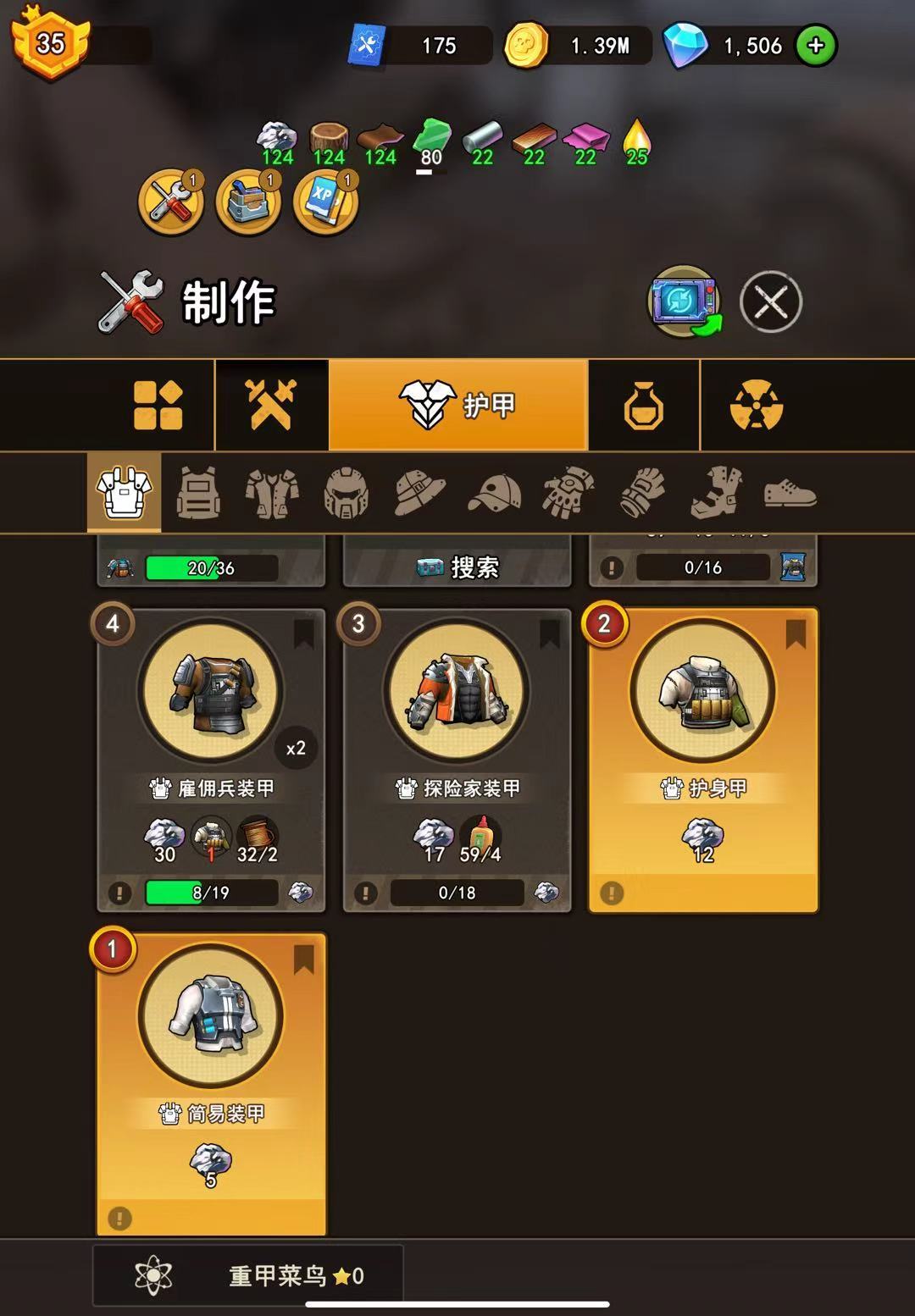 2.绿色部分是仓库箱子。用来提升你的库存上限,还有强化物品和零件(零件是特殊资源,获取来源是探索)的最大叠堆数量。库存满了造出来的东西没地方存。所以要时刻保证够用。