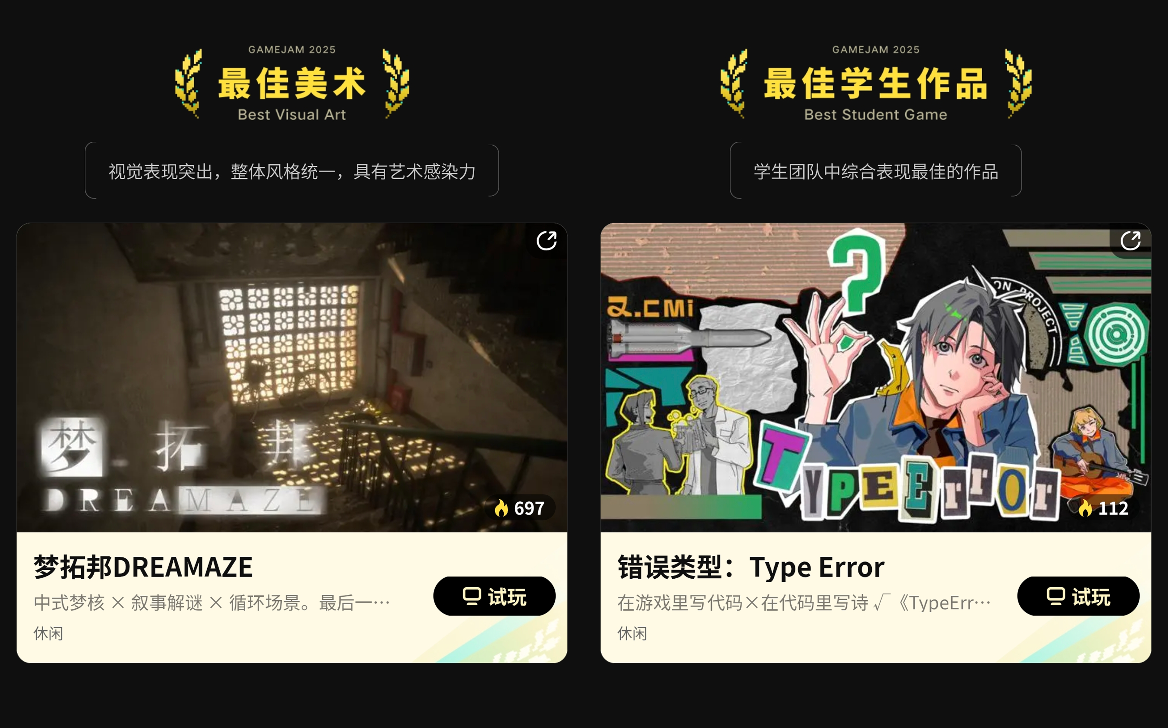 2025 聚光灯 21 天 GameJam 大奖现已公布,恭喜《 错误类型:Type Error 》荣获 “最佳游戏” 奖项!
